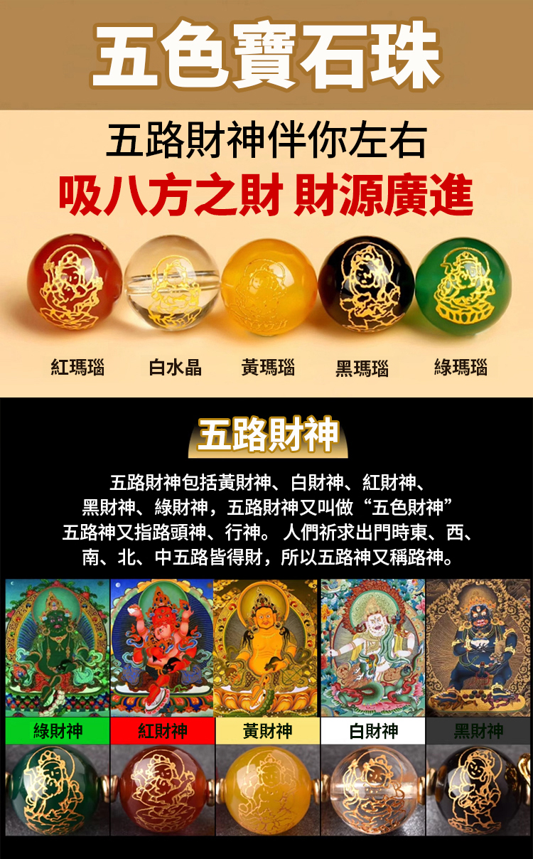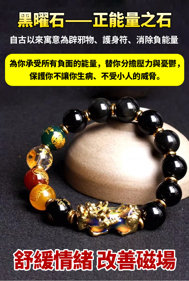 黑曜石貔貅五路財神手串